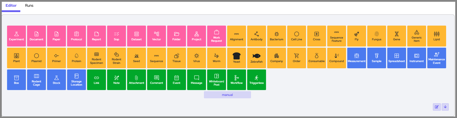 Labguru’s workflow editor is a powerful tool that can automate any process or task performed manually within the system. Automation can be tailored to your specific needs and can be used across the system utilizing the various functions Labguru has.