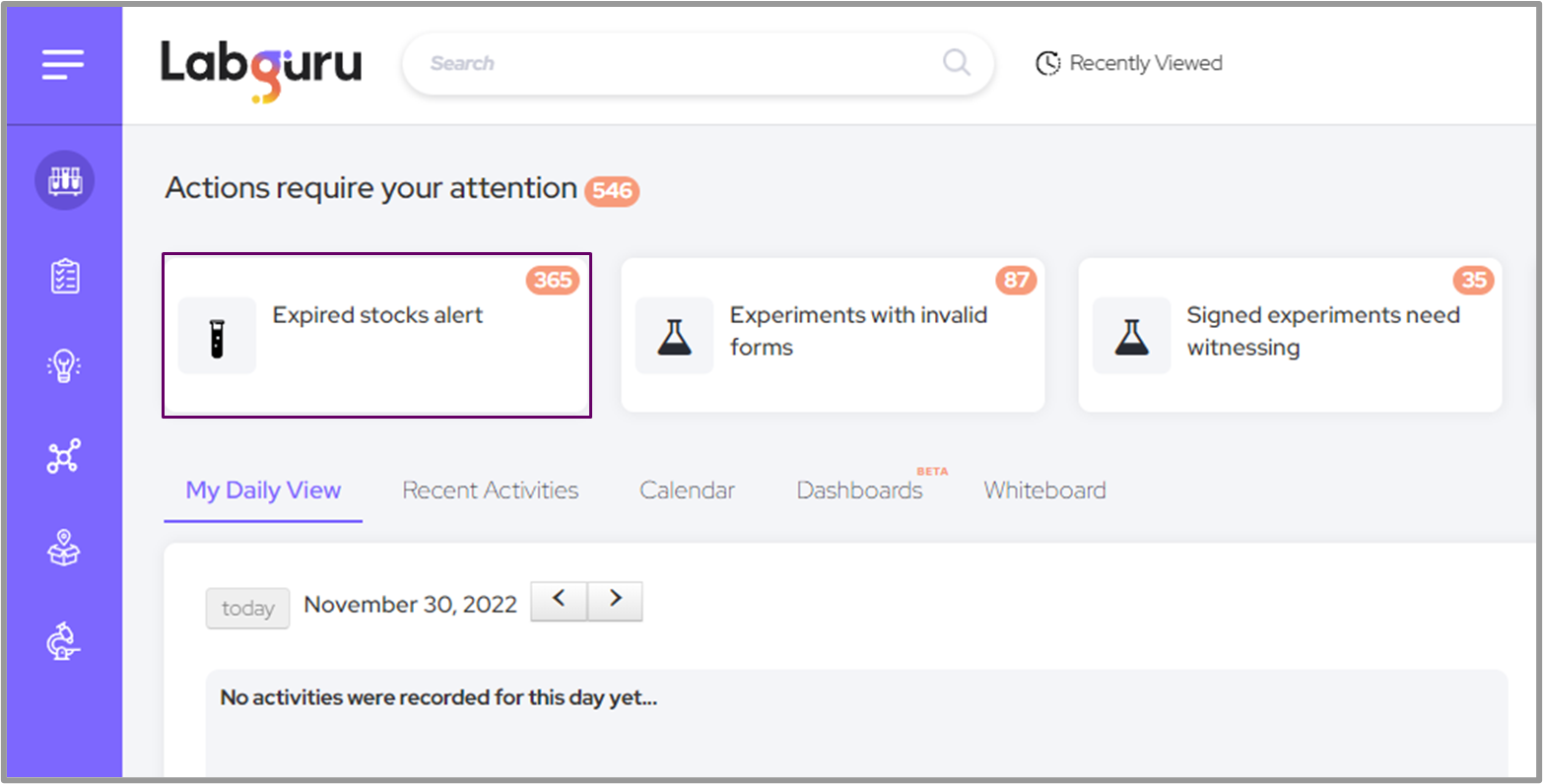Using unexpired materials is also crucial for generating accurate and reliable results. Labguru allows you to track your stocks and prevent the use of expired materials.