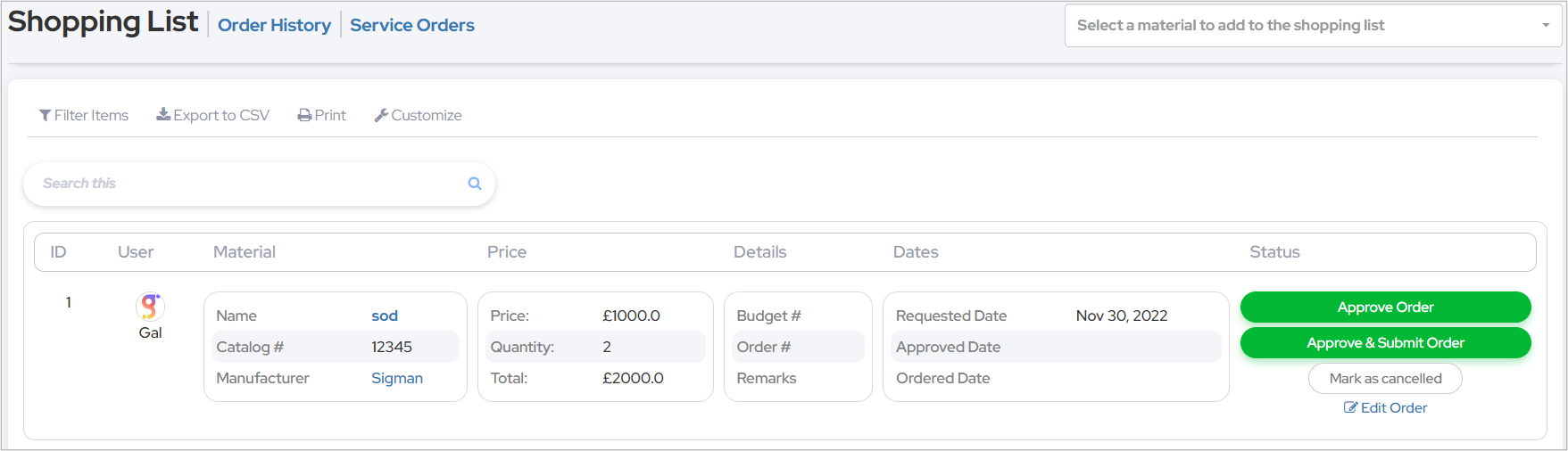 Users can now filter their shopping lists by custom LOV fields, as well as the Order Number field