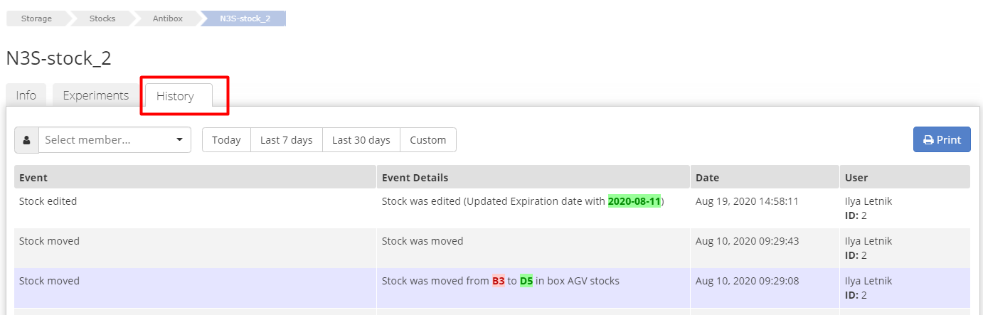 New Feature - Stock History tab - on the stock page there is a new tab called "History". This tab will show all actions done for the specific stock since it's creation.