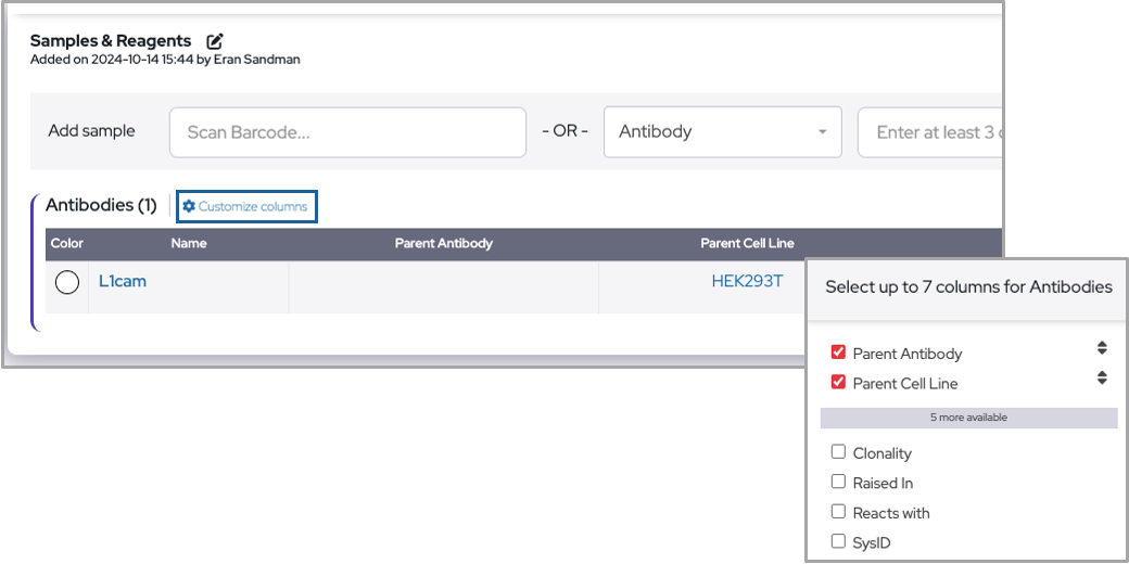 You can now include parent columns when adding inventory items to a sample element, ensuring easy access to all relevant data.