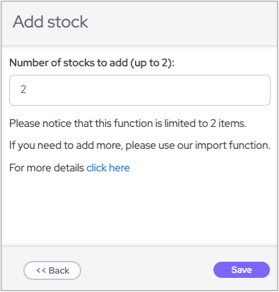 The number of stocks that can be created at once, has been increased from 100 to 5000.