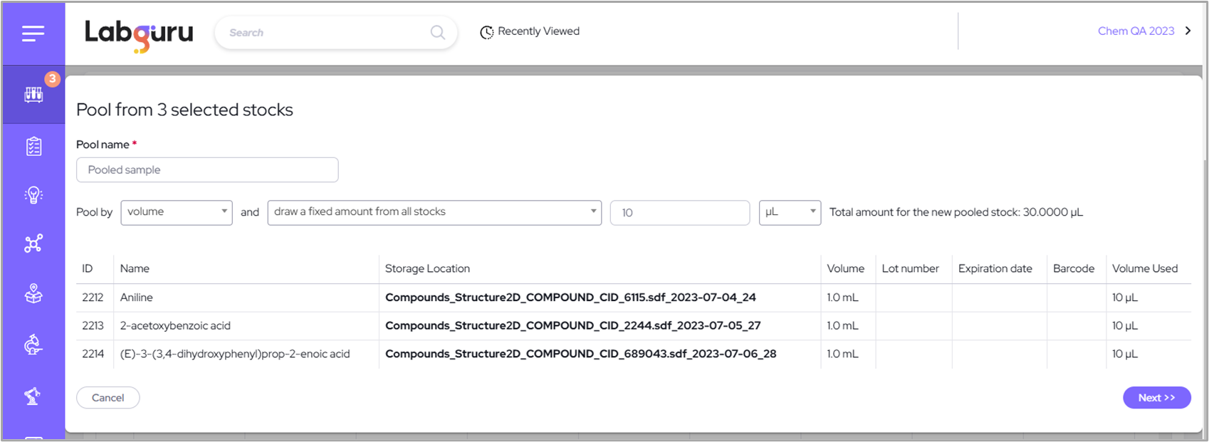 Sample Pooling feature introduces the ability to combine multiple individual samples into a single, consolidated pool. This capability supports pooling across various inventory items and collections, enhancing lab efficiency, tracking, analysis, and resource management.