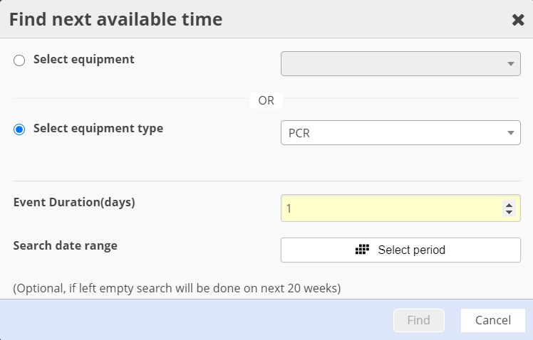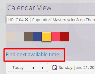 In the scheduler, a new function was added that allows the user to find the next available time slot for the equipment.