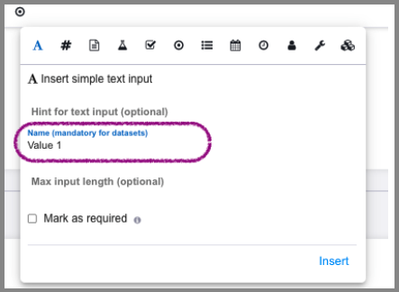 When creating the form input fields ('Value 1', Value 2' and 'Avg'), make sure to name them by populating the 'Name' field, as it will be necessary for accessing these fields via the API: -