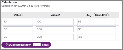 The 'Avg.' field will be auto-populated with the calculated average of the values entered into the 'Value 1' and 'Value 2' fields.
