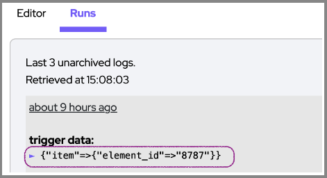 Once the button is clicked, the ID of the Form element where the button is located is sent to the Workflow as part of the 'trigger data':