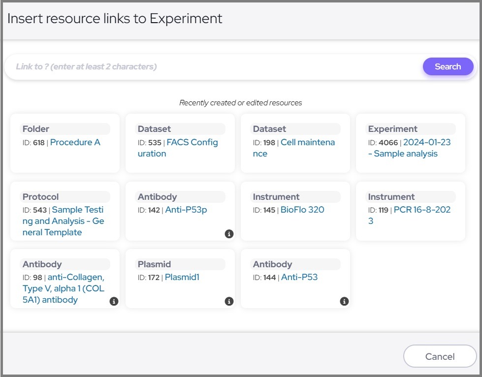 Learn how to link your experiments to other pages in Labguru