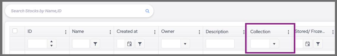 The stock index page can now be filtered by the specific Collection the stocks belong to, this allows for a more tailored search of your stocks.