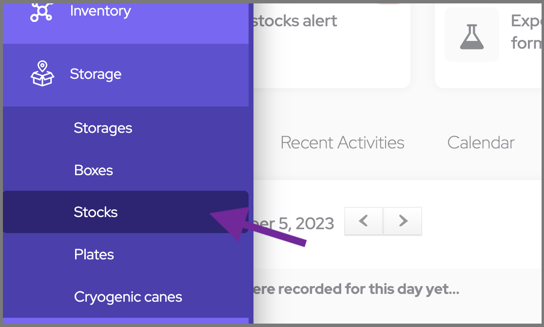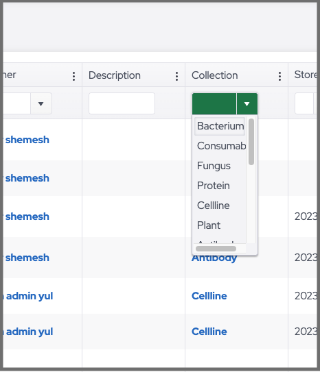 2. In this index page you can see all the stocks in your Labguru workspace, sometimes you may want to narrow your search to only see stocks from a specific collection.