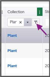 4. This will filter your search result to only show stocks that are found within the selected collection. If you want to further tighten your search you can addition pre-existing filter options. For example, if you wanted to find stocks of a particular item, you would filter via the "Content" column. To remove the filter, click on the button next to the filter and the filter will be removed.