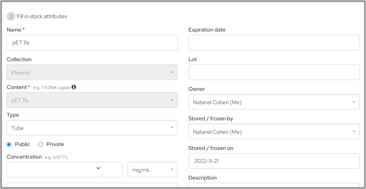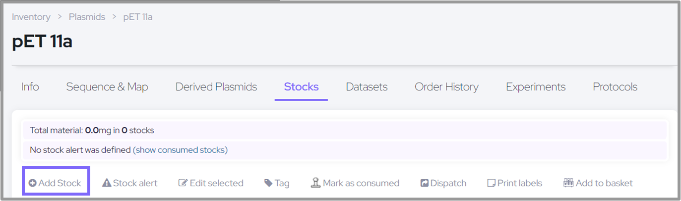 A Stock in Labguru represents a physical entity of your inventory sample items.