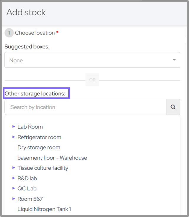 * In the “Add stock” form you can choose to add the stock to a specific box, or to any storage location of your choice without choosing a box.