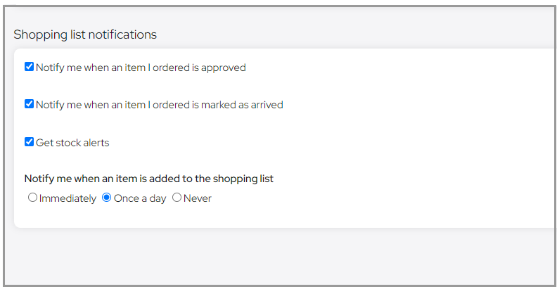 On this page, you can set the shopping list notifications that you would like to receive .