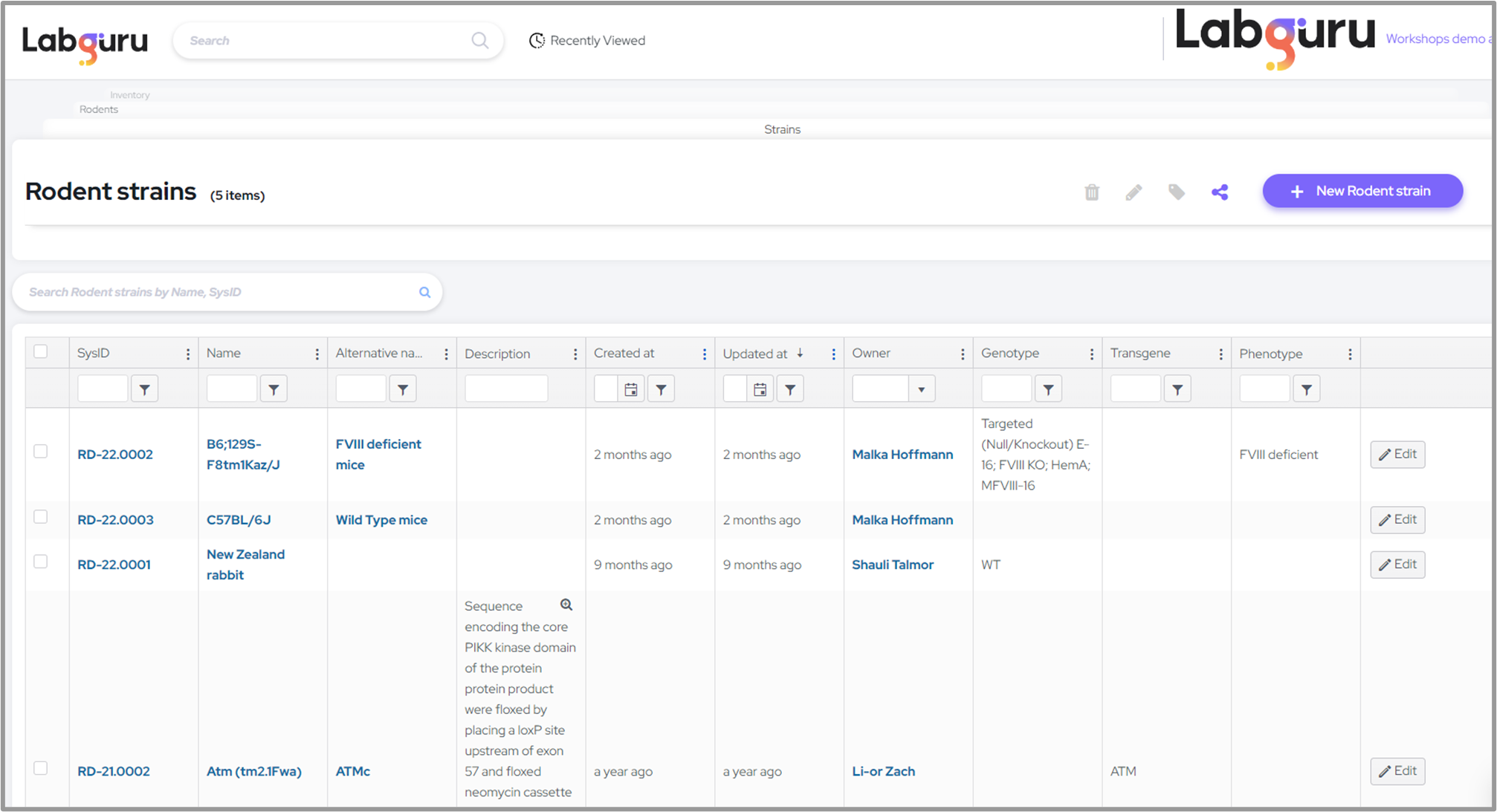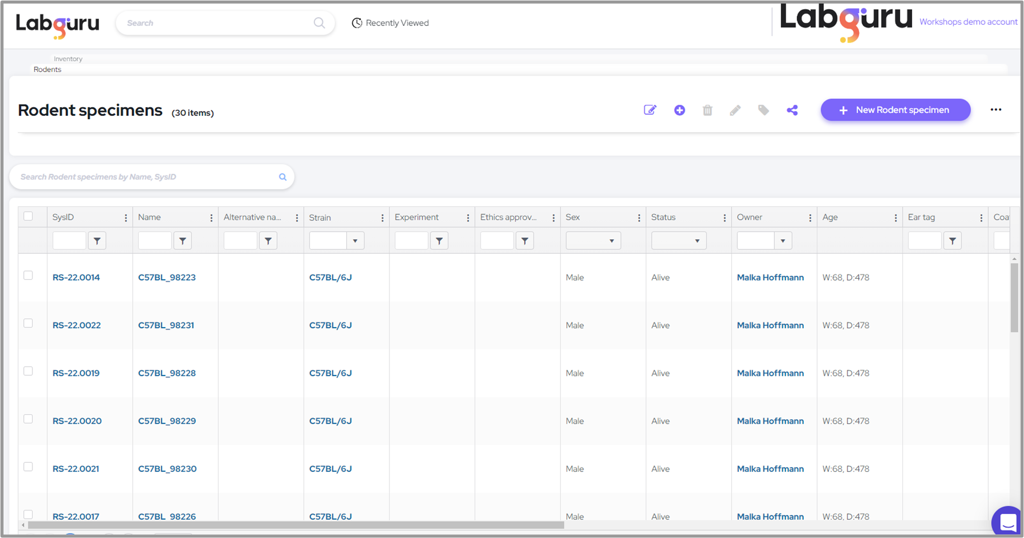 The Rodent collection in Labguru is a special collection. We have implemented many improvements to make this collection best suited for labs who use mice models in their research, and have a need for more specific options to document their work properly.