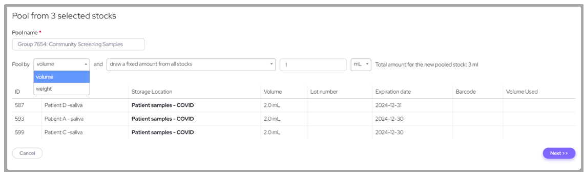 Sample pooling can be done across different inventory items and collections offering significant benefits for laboratory efficiency, tracking, analysis and resource management. This feature allows users to streamline processes by grouping multiple samples into a single pool, making it easier to manage and analyze large datasets.