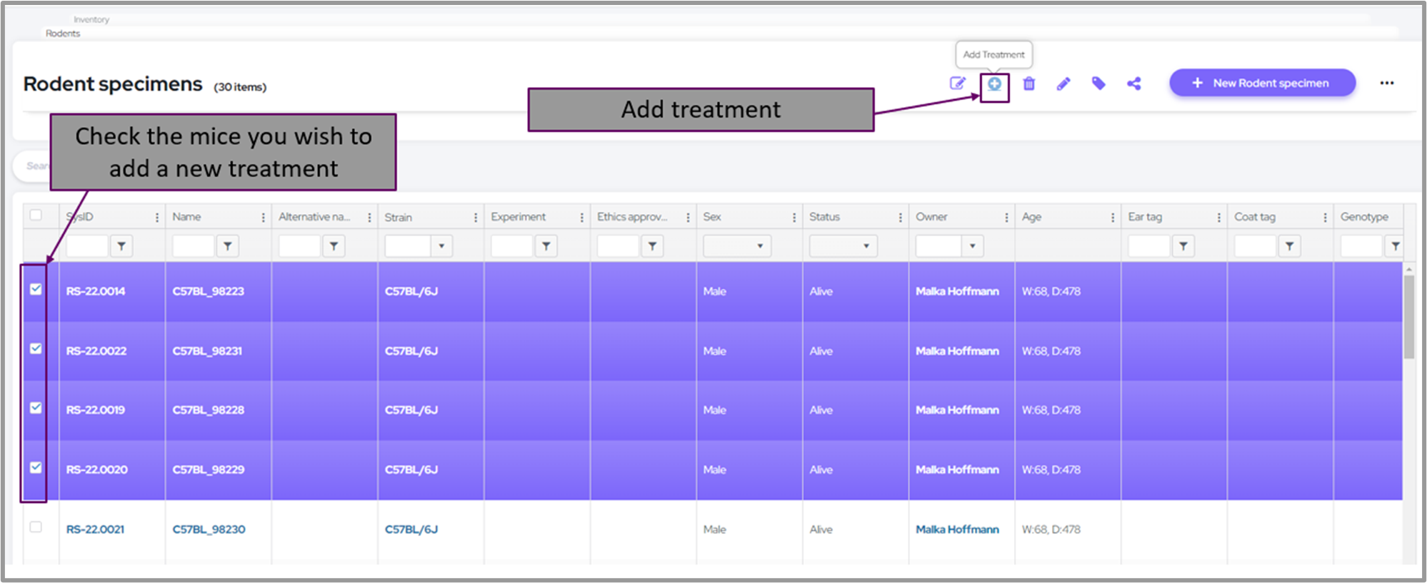 Documenting Mice Treatments