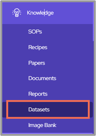 Go to 'Knowledge' module and choose 'Datasets' from the drop down menu: