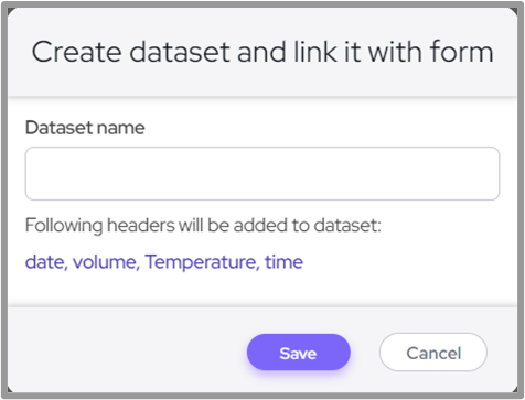 Select the type of dataset. Provide a name for the new dataset and click 'Save':