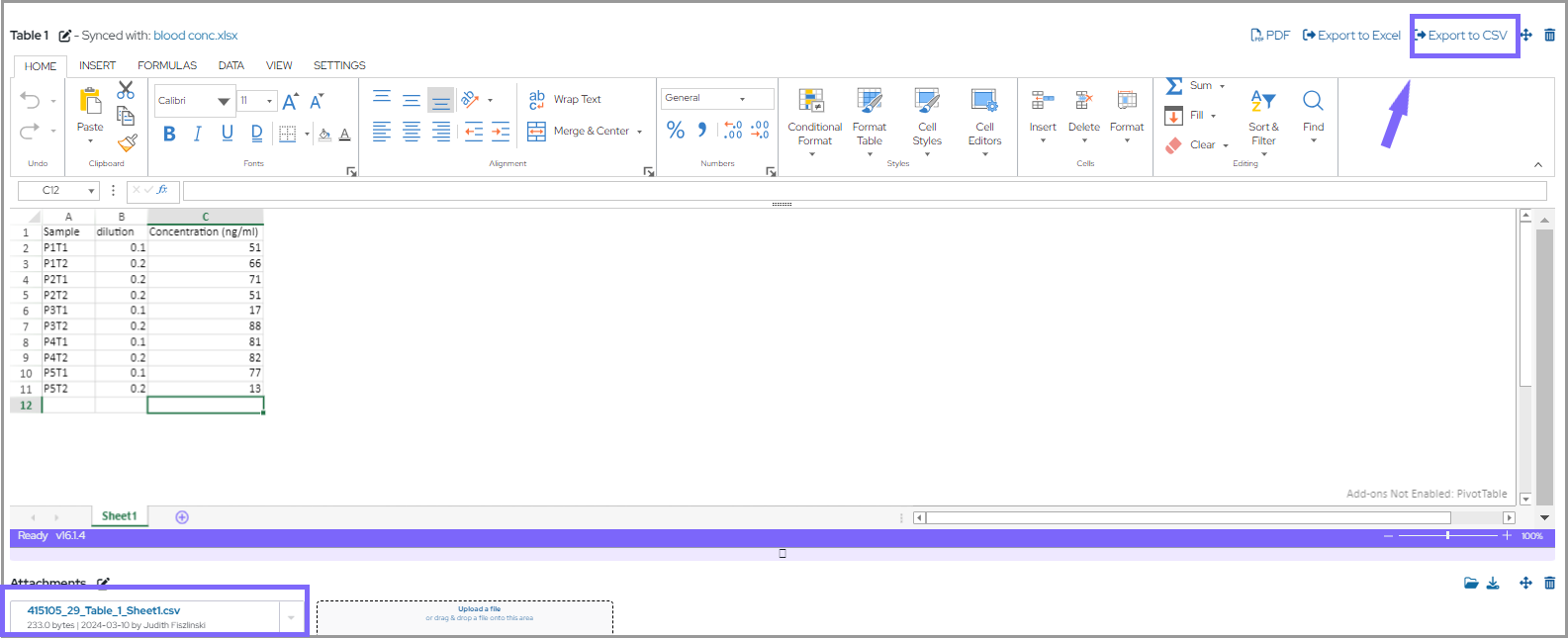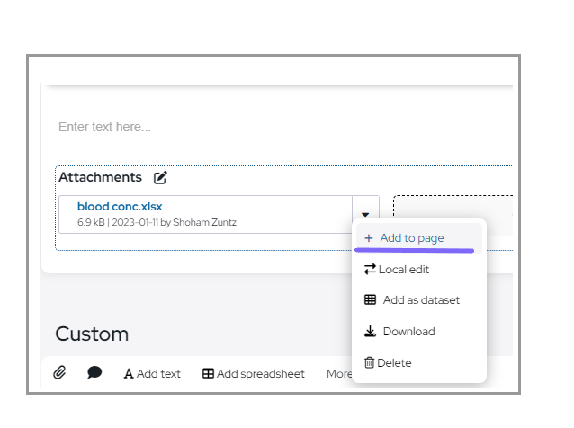 This allows you to see the data straight on the experiment page and offer basic editing options. Changes made in the spreadsheet will automatically update the attachment itself.
