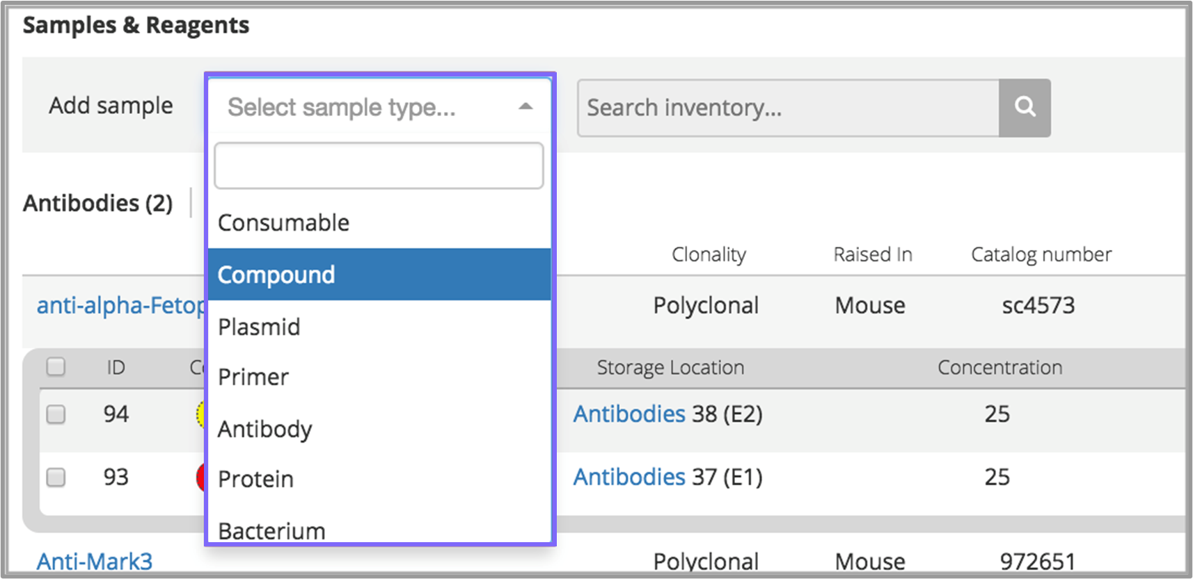 Adding your samples to an experiment is the essence of creating the link between your inventory and ELN.