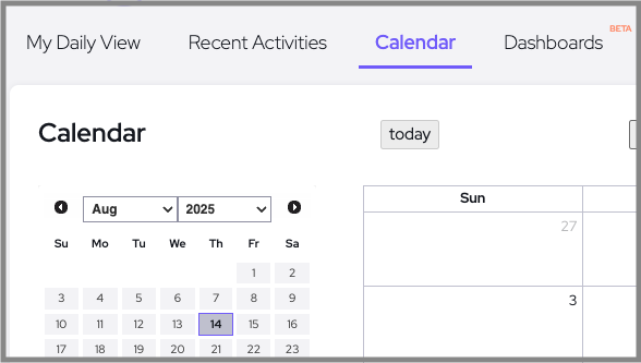 1. Access to your Labguru calendar from your dashboard -> Calendar tab: