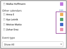 Easily differentiate the different events of your team members by assigning them different colours on your calendar settings.