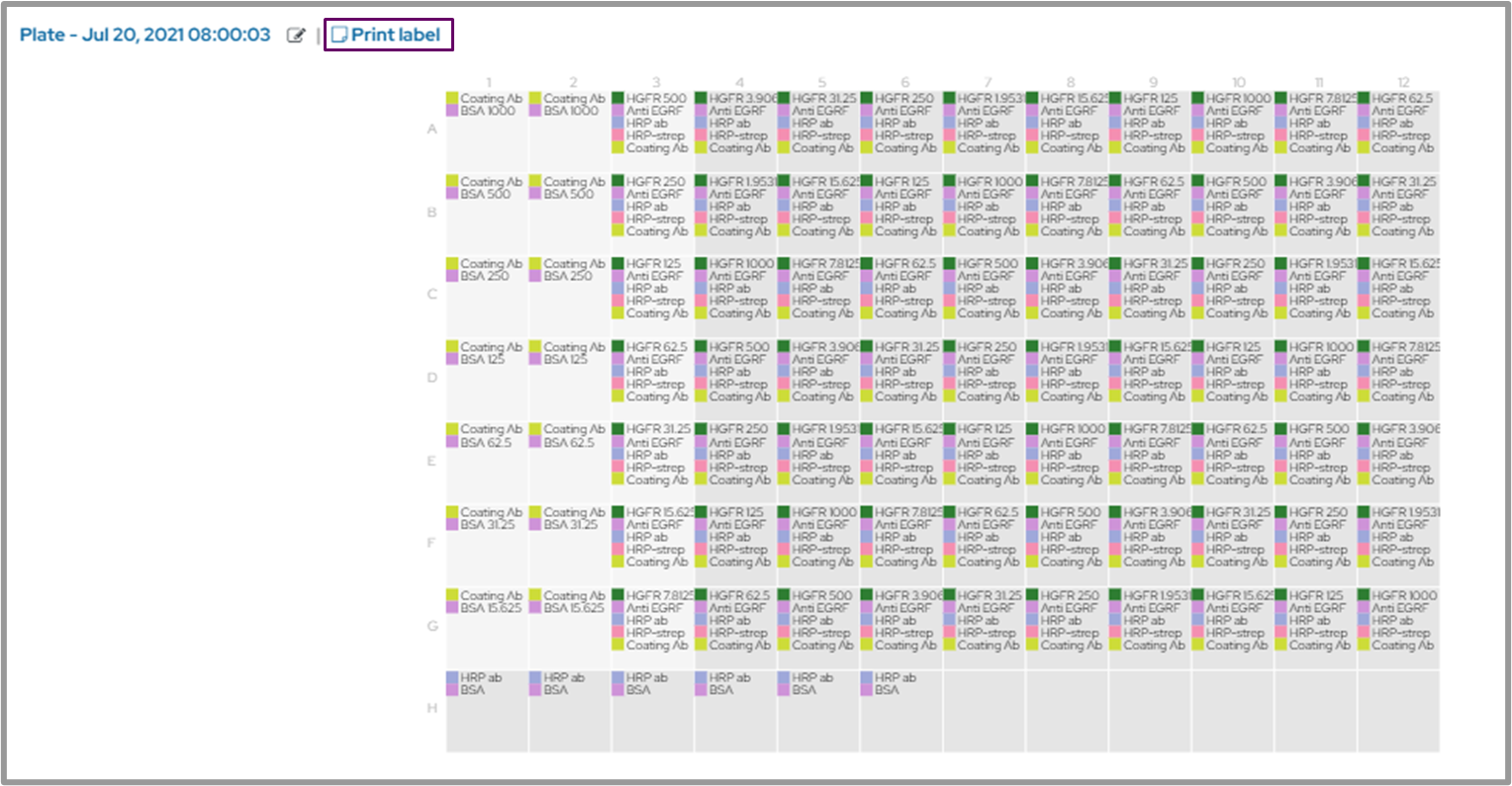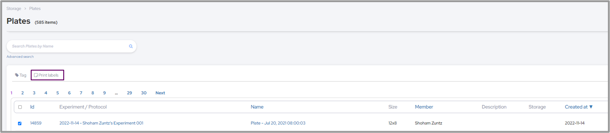 1.Printing labels for plates can be done from the Experiment page, within the plate element