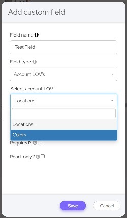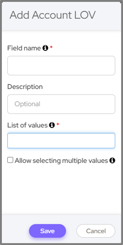 In addition, in cases where multiple values selection was allowed and a LOV was created in the account, you will not be able to change the multiple values selection option.