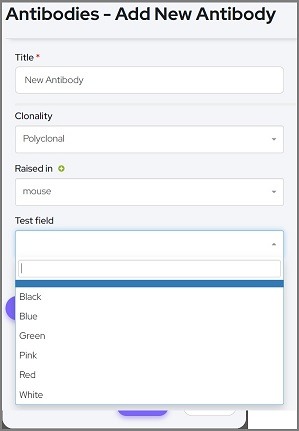 Now, when users create new items in that collection, the new custom field will allow them to select from the LOV defined in the account's settings