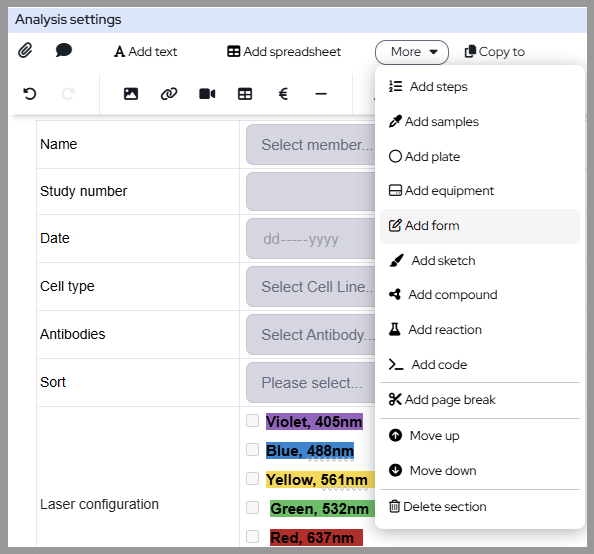The form element in Labguru is an excellent tool for creating documentation, organizing and aggregating data, and generating reports. By incorporating a form element within a protocol, you can design a tailored form with specific input fields that restrict data entry to certain types, such as text, numbers, dates, inventory items, and lab members, among others.