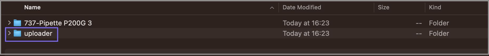 To use the generic UpFolder, open EasyEdit2, in the menu click on Open folder. This will bring you to the EasyEdit2 folder. You will see a folder titled "uploader" this is the generic UpFolder. Any files that are added to this folder will be uploaded to Labguru.