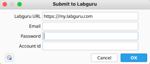 When clicking "Submit to Labguru", you will see a pop-up window with the following fields to fill: