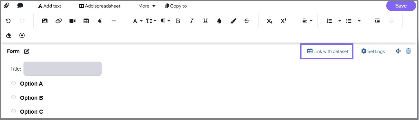 Link the Form to a Dataset using the 'Link with dataset' button.