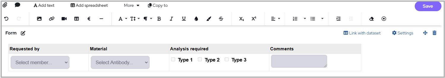 A Dataset in Labguru is a table that can be created from various sources. In this article we discuss the option of creating a Dataset and collecting experimental data using a Form Element.
