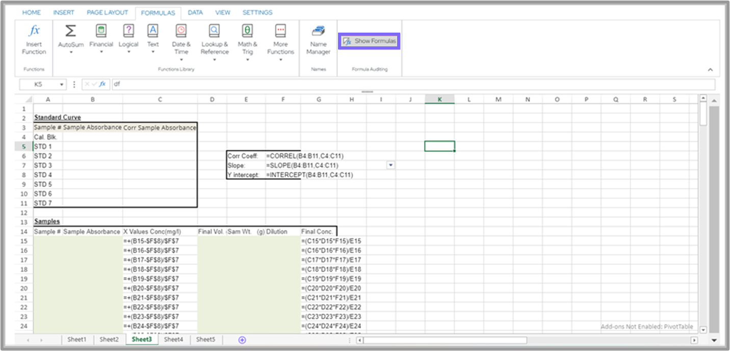 The spreadsheet element of the ELN offers basic Excel functions and exclusive advanced options.