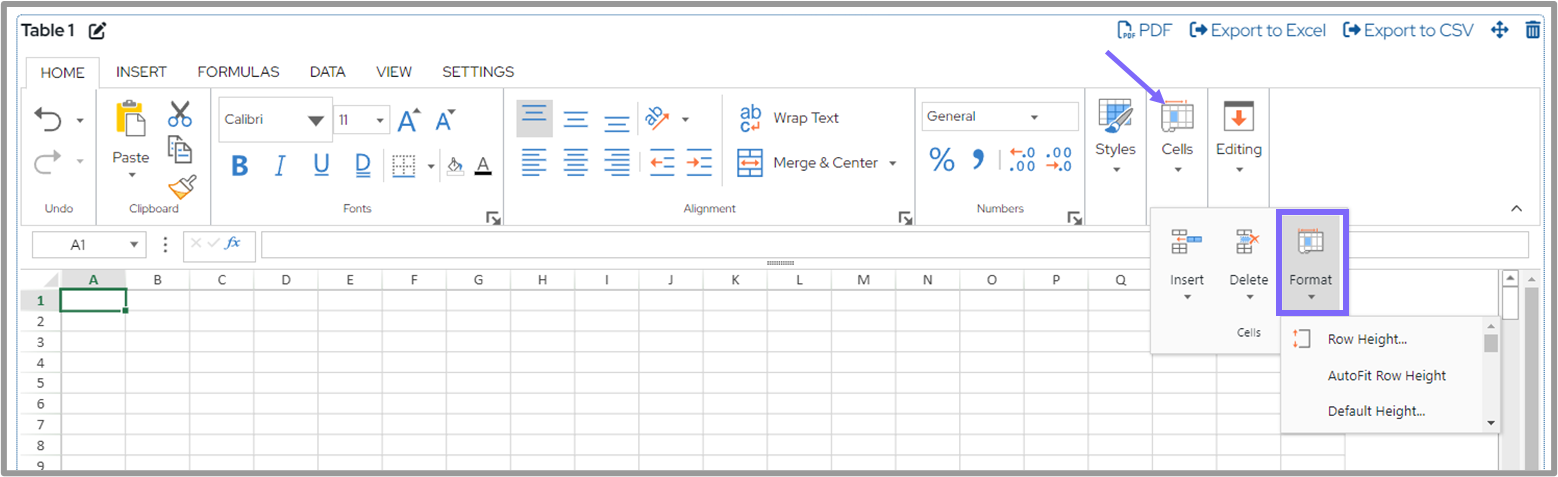 The Format function allows you automatically resize the rows and columns in a worksheet using AutoFit, hide rows and columns, format rows and columns headers and sheet protection options.