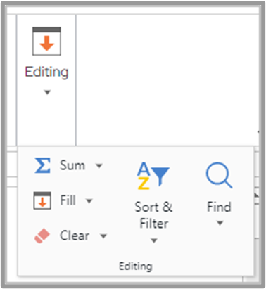 The Editing menu includes basic calculation formulas, auto-fill options, Sort & Filter, and Find functions.