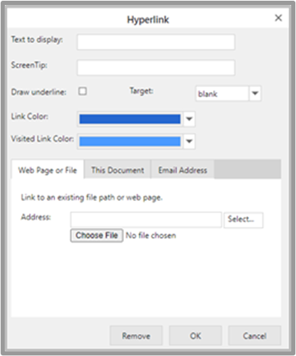 Screen tip to be presented while the mouse pointer hovers over the hyperlink is available as well.