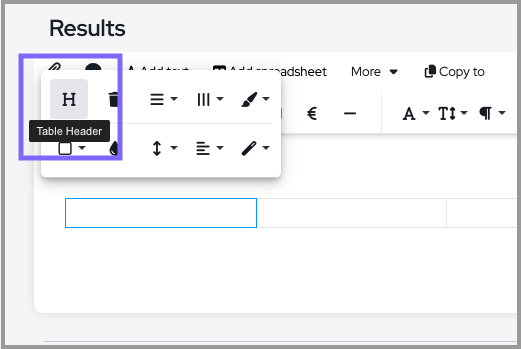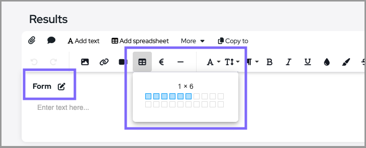 2. Add a text table from the text editor bar with one row and the desired number of columns.
