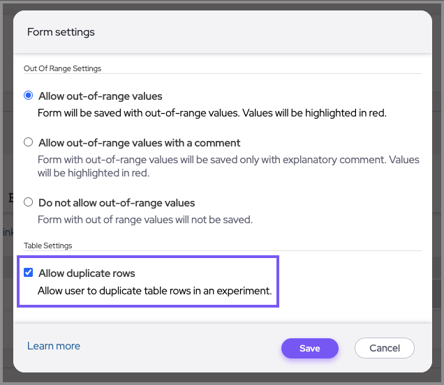 7. Allow duplicate rows: