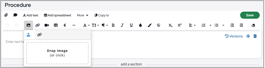Insert image allows users to add inline images of various formats.