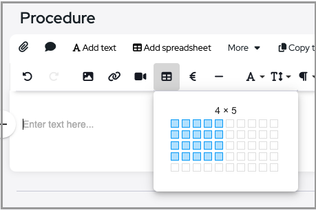 Insert table - Text tables can be added to text section, after the table has been added click in a cell to see table option.
