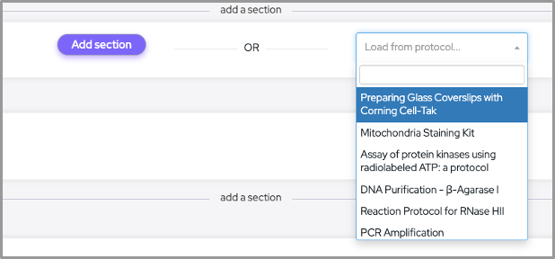 We can create an experiment that contains multiple protocols by adding a protocol as a new section.