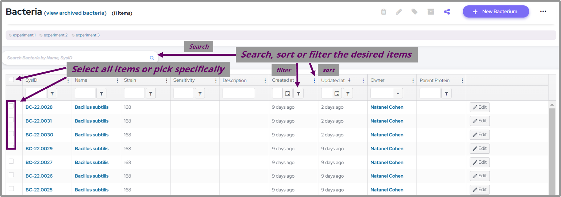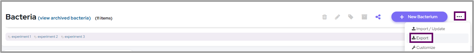 Note that a collection export file will have a row for each stock, for example, if you have one entry for E. coli but 10 stocks of it, in the export there will be 10 rows for E. coli.