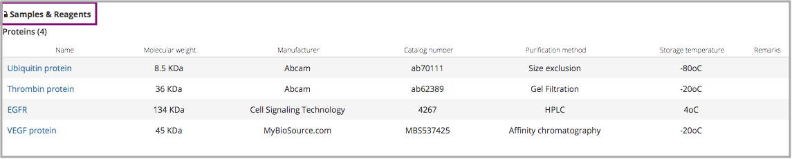 In the experiment page the sample element, that belongs to the protocols added, will appear as locked. Samples can't be removed but stocks can be added to each one.
